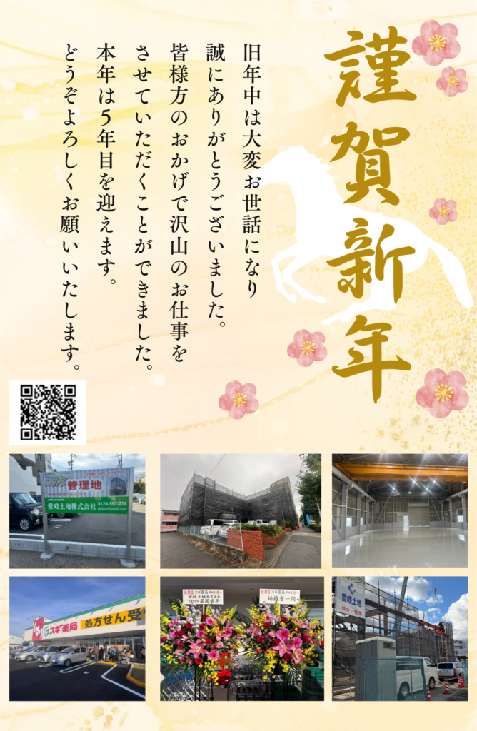 謹んで新年のお慶びを申し上げます。 昨年もたくさん仕事をいただき誠にありがとうございます。 おかげさまで弊社は創業以来、毎年順調に成長しこの地域では一定の存在感を得ているとの評価を得ることが出来ました。 昨年の8月は900坪の貸地の管理を委... -